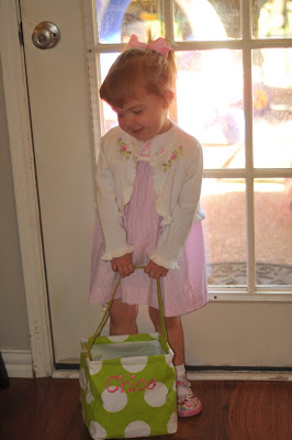 chloe was so excited to go to school on wednesday because she was going to get to give gifts to her teachers and have an easter egg hunt with her friends! here she is...all ready to go!